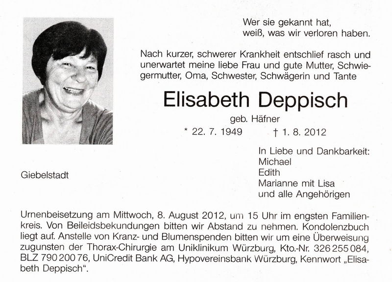 tiefes Mitgefühl gilt seiner Frau Irmgard mit Familie