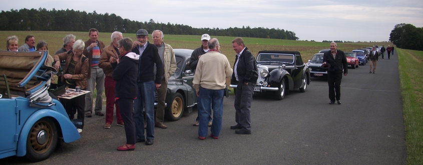 Personen mit 14 Fahrzeugen bereit zur Herbstausfahrt. Zwei