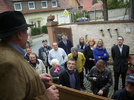 Grünsfeldhausen zum 1. Stop an der Achatiuskapelle. Michael, der alte