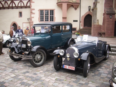 nach Wertheim. Ein Ford A Bj. 1929, Aero 662 Bj. 1934 und ein Triumph