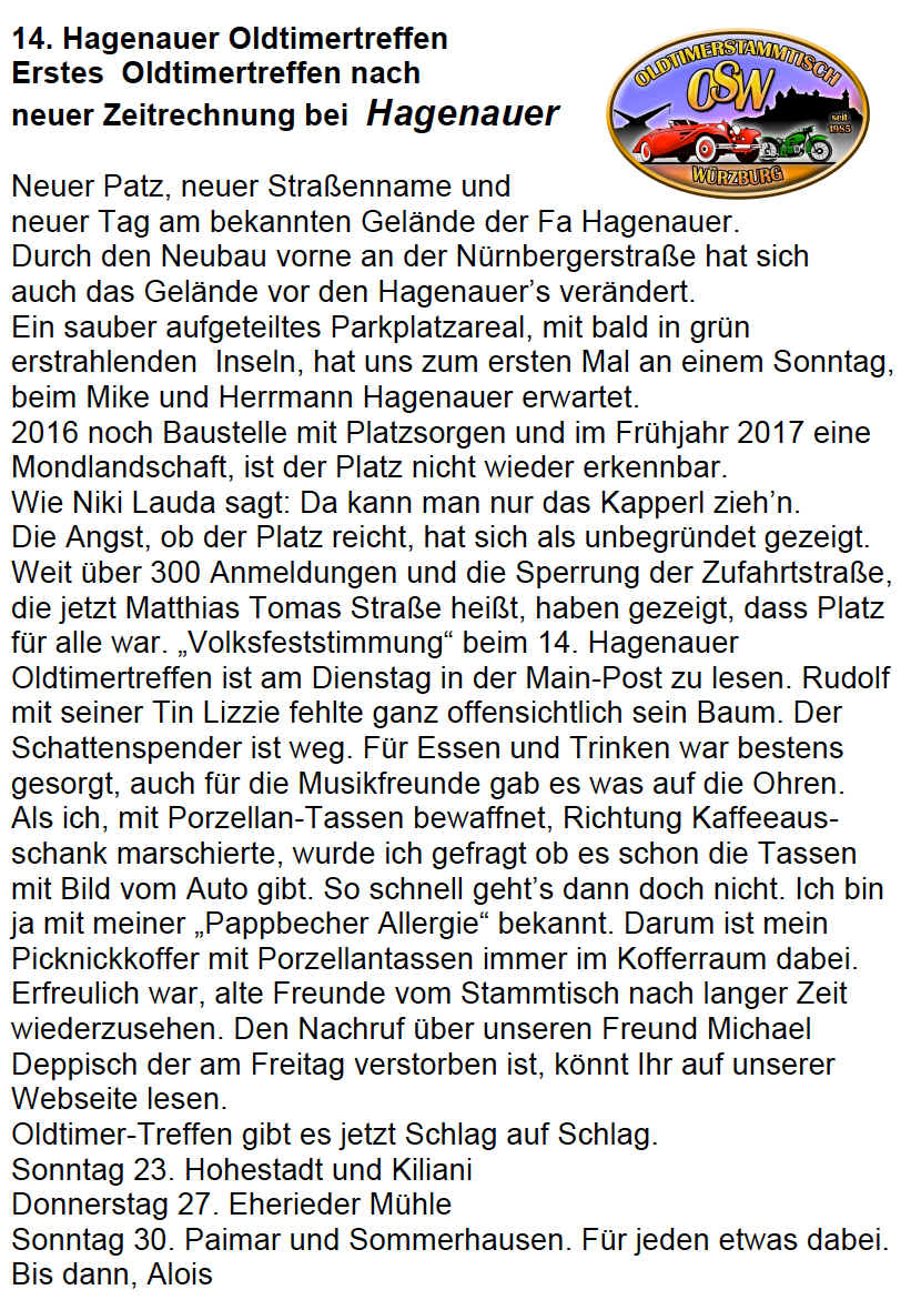 ihrem Baustellen-Wegweiser unter Punkt 09 auch geschrieben: „Oldtimerstammtisch