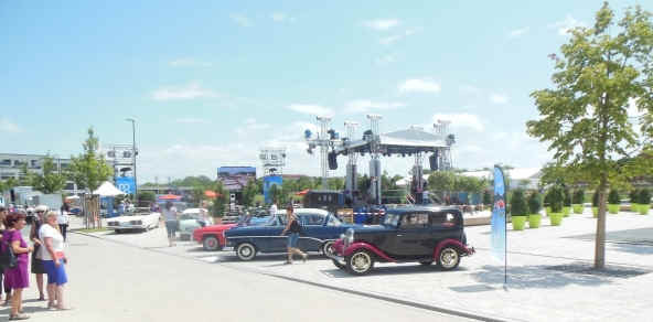 Autos als Hintergrund für die Bühne aufgestellt. Danach, hatte einer