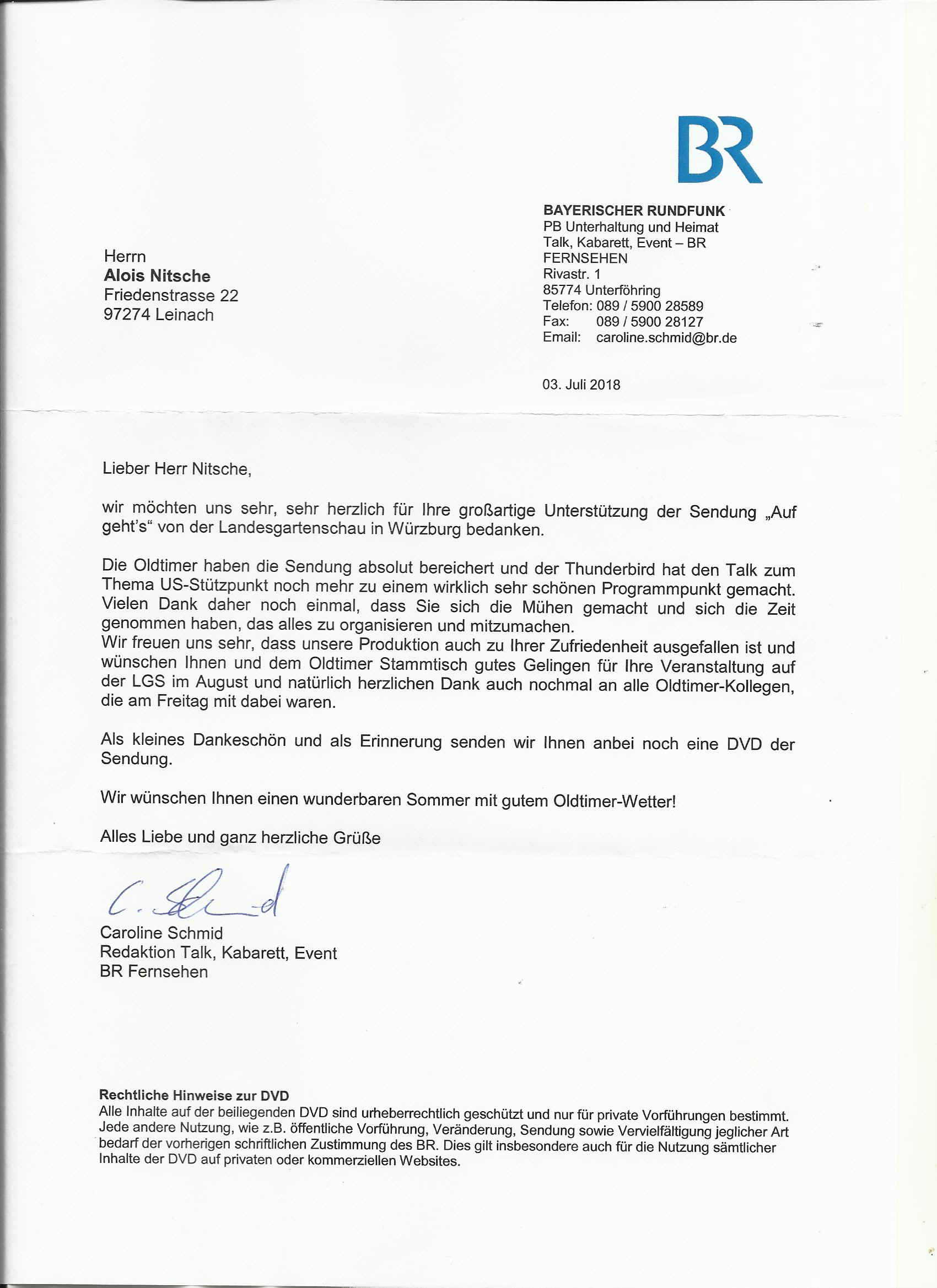 Inzwischen ist vom Sender eine DVD bei mir gelandet.