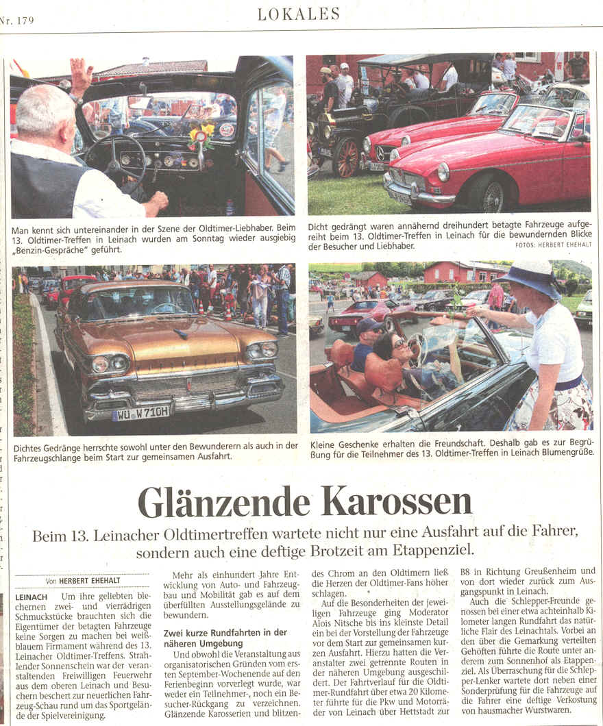 Sa 01.06. Oldtimertreffen in Tauberbischofsheim. Eine Anmeldung beim Automobilclub