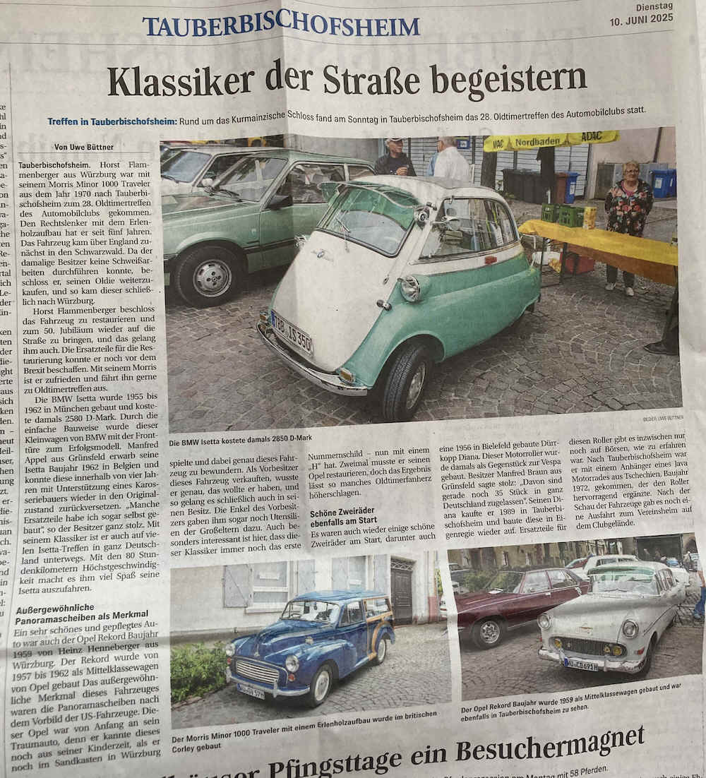 So 10.08. Classic Treffen in Karlstadt, 10-18 Uhr, Info: https://ac-karlstadt.de/termine#2025-08-10